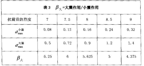 大震作用與小震作用之比(見表3)。